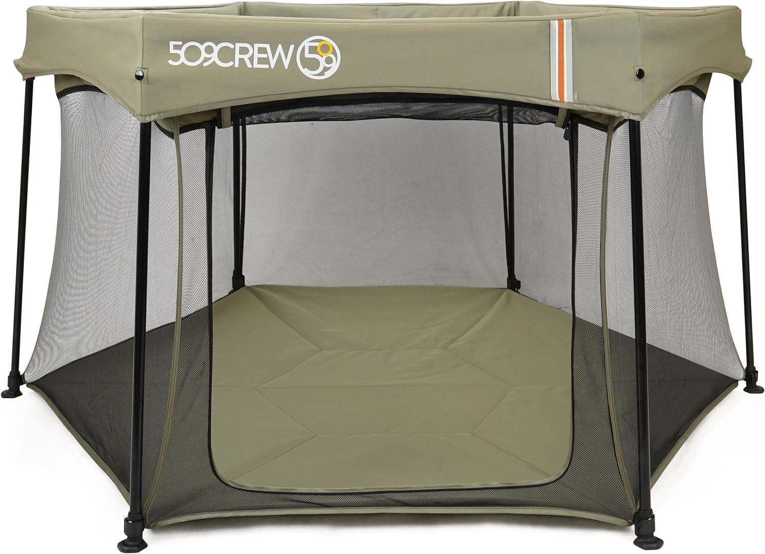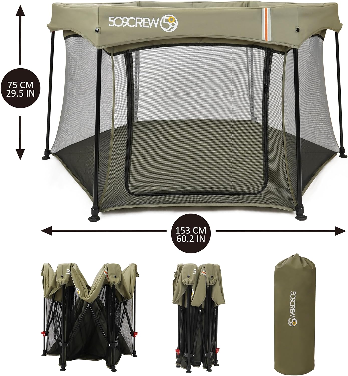 509 CREW HEXI Parc de jeu hexagonal portable avec ouverture de porte en filet et fermeture éclair pour enfants jusqu'à 15 kg – 33 lbs avec sac de transport
