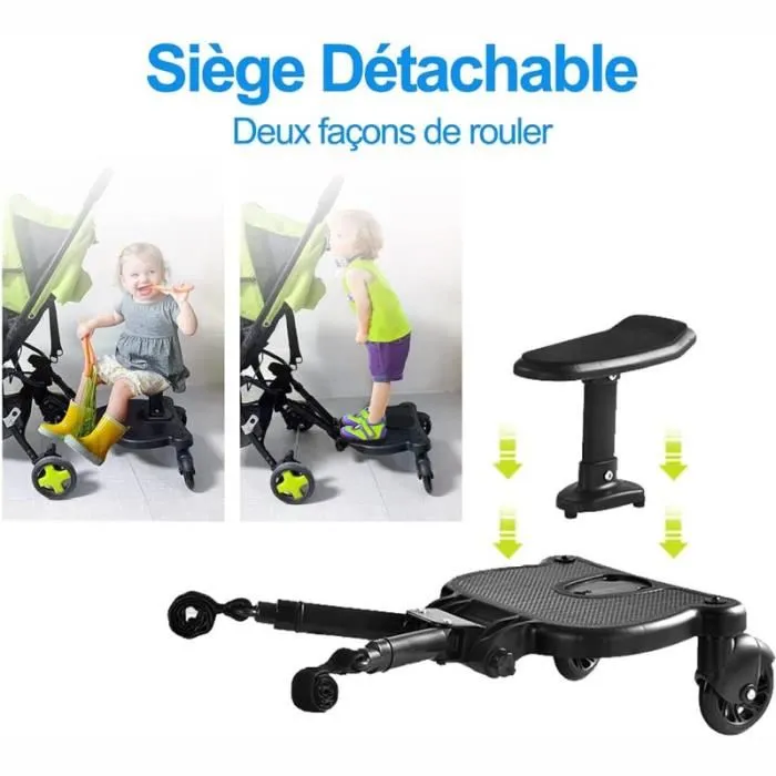 - Il s'agit d'un accessoire de poussette de conception récente avec un siège détachable, permettant aux enfants de s'asseoir sur le siège ou de se tenir debout sur la plate-forme tout en voyageant.