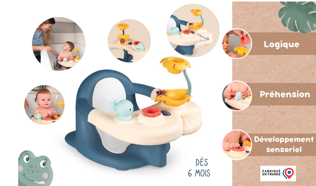 - CONFORT ET SÉCURITE L’heure du bain sera un moment agréable avec le siège de bain pour bébé Little Smoby ! Dès ses 6 mois, bébé pourra être confortablement installé dans son siège. Vous pourrez alors le laver en toute sécurité pendant qu’il s’amusera à jouer dans l’eau ! Pour cela, il suffit de fixer le siège sur une surface lisse, grâce aux ventouses incluses.