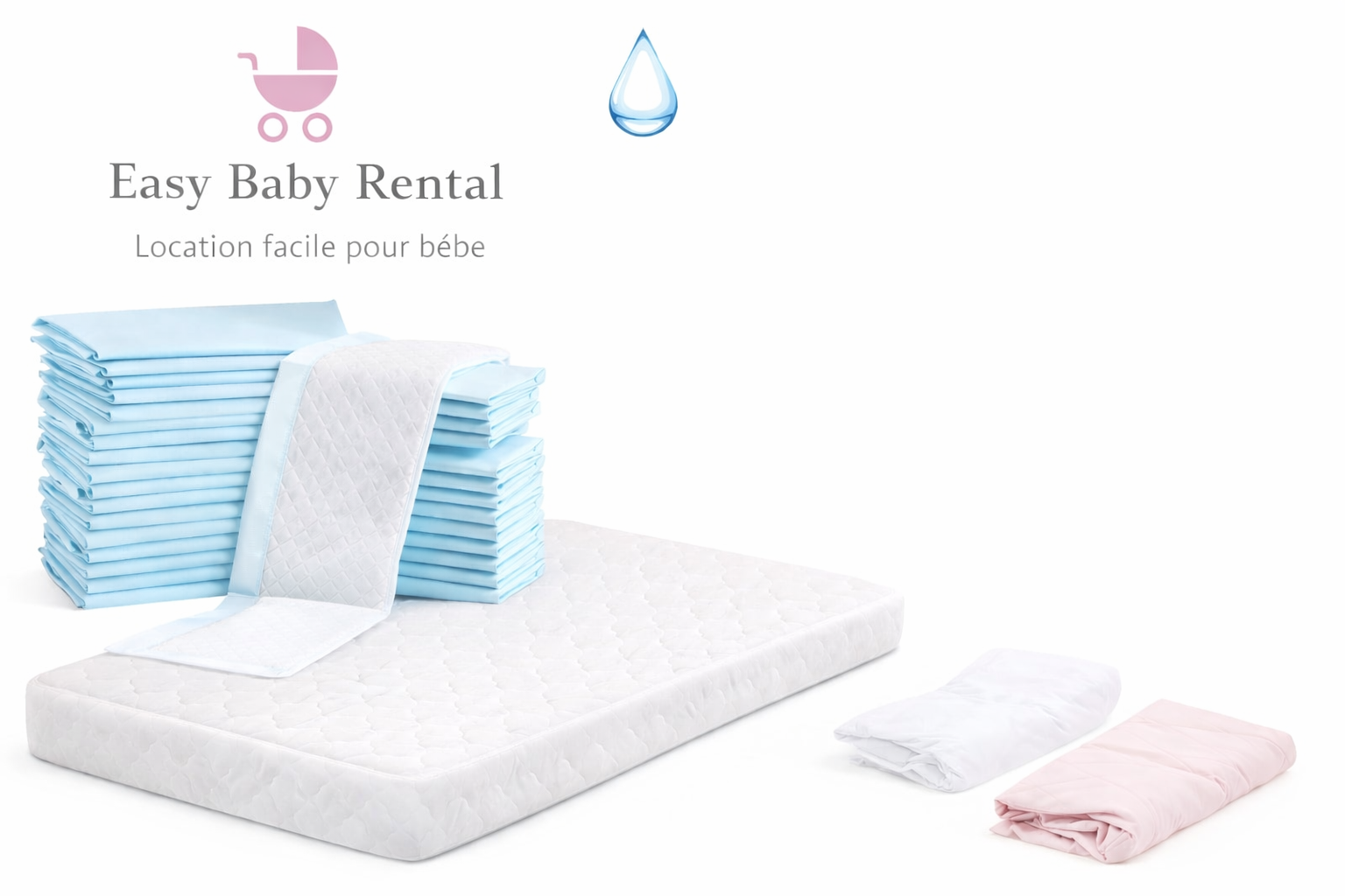 matelas non pliant loué avec draps housse et alèse jetable pour protéger le matelas 120L x 60l x 10ep centimètres