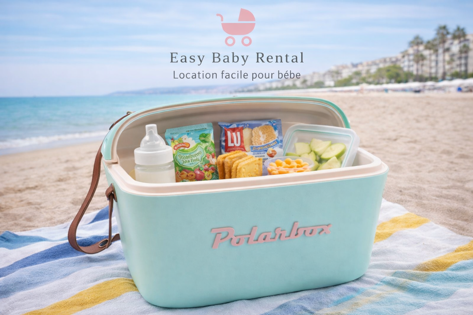 Cooler rental for your 3 to 15-day stay in Cannes. Make the most of your days at the beach in Cannes with our practical and stylish cooler rental service. Ideal for keeping baby bottles, fruit purees, snacks, and children's afternoon tea fresh, our cooler is perfect for family vacations. At Easy Baby Rental, we offer cooler rentals in Cannes with delivery directly to your hotel, Airbnb, or residence. No need to carry everything; it's all ready upon your arrival. Whether it's for a day at the beach, a picnic, or a stroll along the French Riviera, our cooler guarantees freshness, comfort, and peace of mind.
